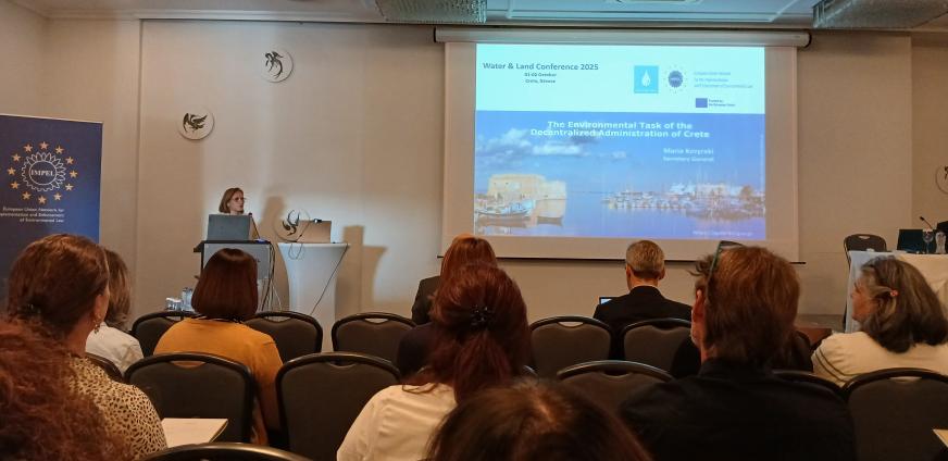 Στο Ηράκλειο διεξάγεται, από 1 έως 2 Οκτωβρίου, το συνέδριο μελών του Δικτύου της Ευρωπαϊκής Ένωσης για την Εφαρμογή και επιβολή της Ευρωπαϊκής Περιβαλλοντικής Νομοθεσίας (IMPEL), με τη συμμετοχή εκπροσώπων από 58 περιβαλλοντικές Αρχές και 37 χώρες. Το διήμερο συνέδριο με θέμα «Ένα περιβάλλον, μία πρόκληση: Βιώσιμη διακυβέρνηση για το Νερό και το Έδαφος» περιλαμβάνει έναν μεγάλο αριθμό επιστημονικών, ερευνητικών και τεχνικών παρουσιάσεων με έμφαση στη διαχείριση και επανάχρηση του νερού και με σκοπό την επάρκεια καλής ποιότητας ύδατος για όλες τις χρήσεις.