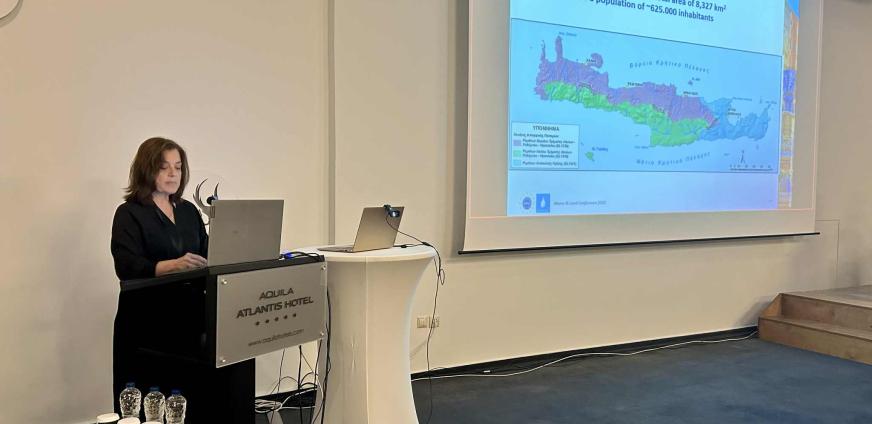 Στην εναρκτήρια ομιλία της η Γραμματέας της Αποκεντρωμένης Διοίκησης Κρήτης Μαρία Κοζυράκη, μίλησε για την κατάσταση των υδατικών πόρων στο νησί καθώς και για καλές πρακτικές που έχουν υλοποιηθεί τόσο σε εφαρμογή του Σχεδίου Διαχείρισης Λεκανών Απορροής Ποταμών (ΣΔΛΑΠ) του υδατικού διαμερίσματος της Κρήτης όσο και με τα Σχέδια Δράσης Προστατευόμενων Περιοχών. Η κεντρική ομιλία στο συνέδριο δόθηκε από τον Joachim D’ Eugenio, σύμβουλο πολιτικής της Ευρωπαϊκής Γενικής Διεύθυνσης Περιβάλλοντος (DG ENV), για τη Στρατηγική Ανθεκτικότητας των Υδάτων της Ευρωπαϊκής Ένωσης.