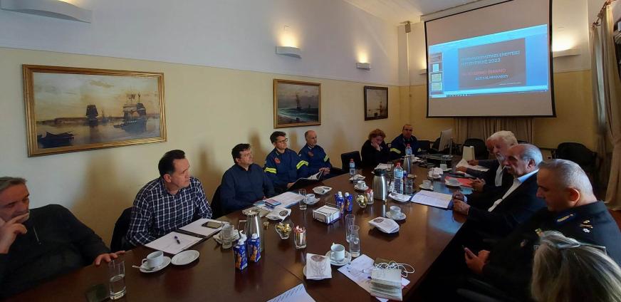 Η Γραμματέας της Αποκεντρωμένης Διοίκησης έθεσε αρχικά το πλαίσιο της τεχνικής σύσκεψης αναφορικά με τη συγκεκριμένη περιοχή που διαθέτει πολύ υψηλό βαθμό επικινδυνότητας ως προς την πιθανότητα εκδήλωσης δασικής πυρκαγιάς, εν όψει της νέας αντιπυρικής περιόδου (1 Μαΐου έως 31 Οκτωβρίου 2023) και στη συνέχεια, οι παρευρισκόμενοι προχώρησαν σε λεπτομερή παρουσίαση του βραχυπρόθεσμου σχεδιασμού πρόληψης και επιχειρησιακής προετοιμασίας και ειδικότερα, των δυνατοτήτων και των περιορισμών που αφορούν στην ετοιμότητα, τα προληπτικά μέτρα και τις απαιτούμενες δράσεις των συναρμόδιων φορέων και υπηρεσιών που συμμετείχαν στη συνάντηση.