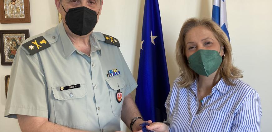 Συνάντηση με τη Συντονίστρια της Αποκεντρωμένης Διοίκησης Κρήτης Μαρία Κοζυράκη είχε σήμερα ο νέος Διοικητής της Σχολής Εφέδρων Αξιωματικών Πεζικού Ταξίαρχος Στέφανος Σίμος, πραγματοποιώντας εθιμοτυπική επίσκεψη, με αφορμή την πρόσφατη ανάληψη των καθηκόντων του.