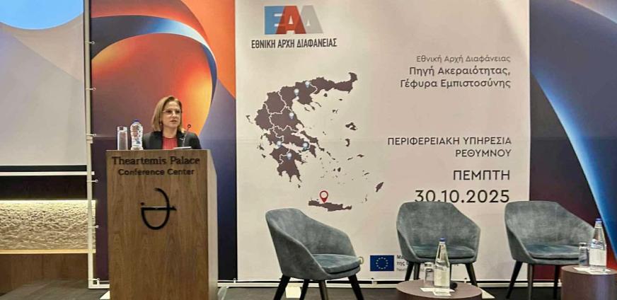 Η Γραμματέας Αποκεντρωμένης Διοίκησης Κρήτης στην εκδήλωση της Εθνικής Αρχής Διαφάνειας στο Ρέθυμνο