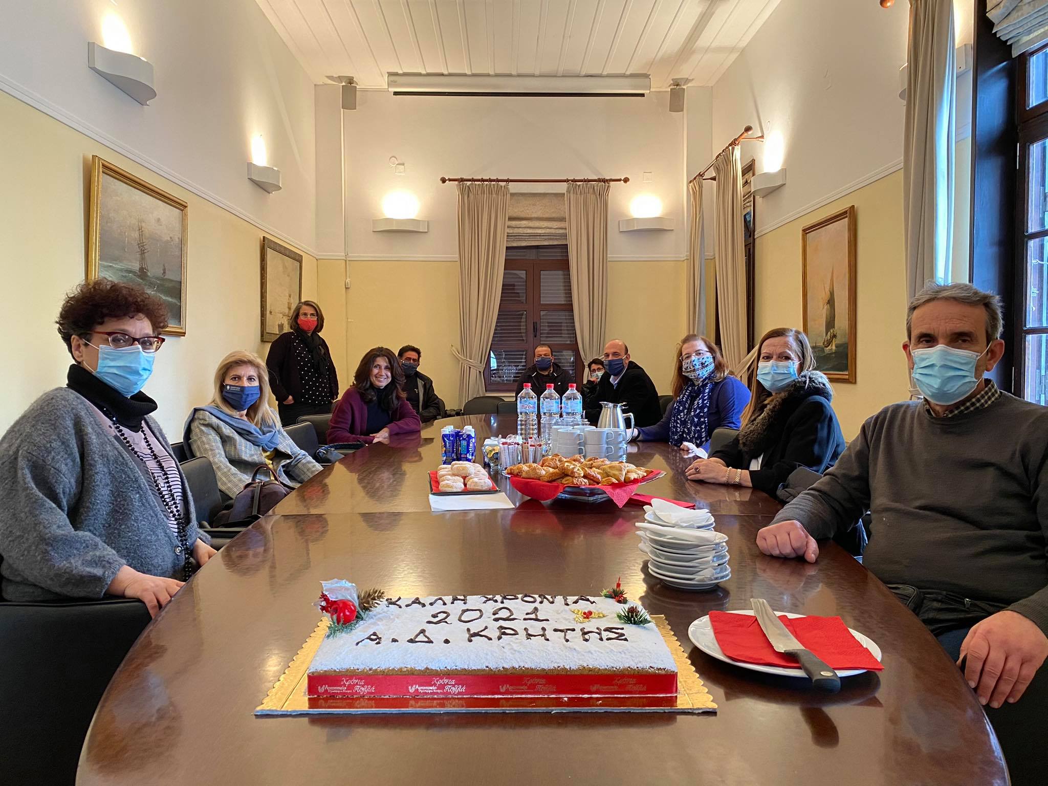 Στο κεντρικό κτίριο της Αποκεντρωμένης Διοίκησης στο Ηράκλειο σήμερα, παρουσία των Γενικών Διευθυντών, κόψαμε την πρωτοχρονιάτικη πίτα, χωρίς ωστόσο να μπορούμε, λόγω της επιδημιολογικής κατάστασης και των περιοριστικών μέτρων που ισχύουν, να οργανώσουμε την ανάλογη γιορτή και να συναντηθούμε όλοι μαζί.