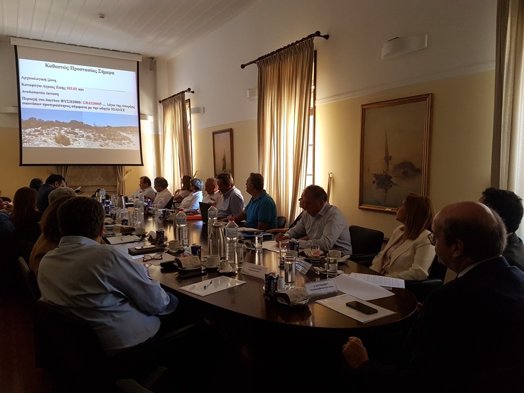 Η διαχρονικά ικανή συνεργασία και σύμπραξη όλων των αρμόδιων οργανισμών και υπηρεσιών, με στόχο τη συλλογική ευόδωση της δημιουργίας του θεσμικού μέσου που αποτελεί το Σχέδιο Διαχείρισης - Δράσεων, για την αποτελεσματική προστασία, διατήρηση και βιώσιμη λειτουργία του μοναδικού φυσικού πόρου, επιβεβαιώθηκε με τον καλύτερο και πλέον αισιόδοξο τρόπο στη δεδομένη συνάντηση. Ιδιαίτερες ευχαριστίες στους παρευρισκόμενους εκπροσώπους των εμπλεκόμενων τοπικών φορέων, για τις εμπεριστατωμένες απόψεις και προτάσεις που παρουσίασαν και κατέθεσαν αναφορικά με το εν λόγω τριετές σχέδιο καθώς και την αναλυτική δέσμη ενεργειών και δράσεων (action plan) διαχείρισης της προστατευόμενης περιοχής της νήσου, που είχαν παραλάβει εκ των προτέρων για σχετική ενημέρωση και επεξεργασία: