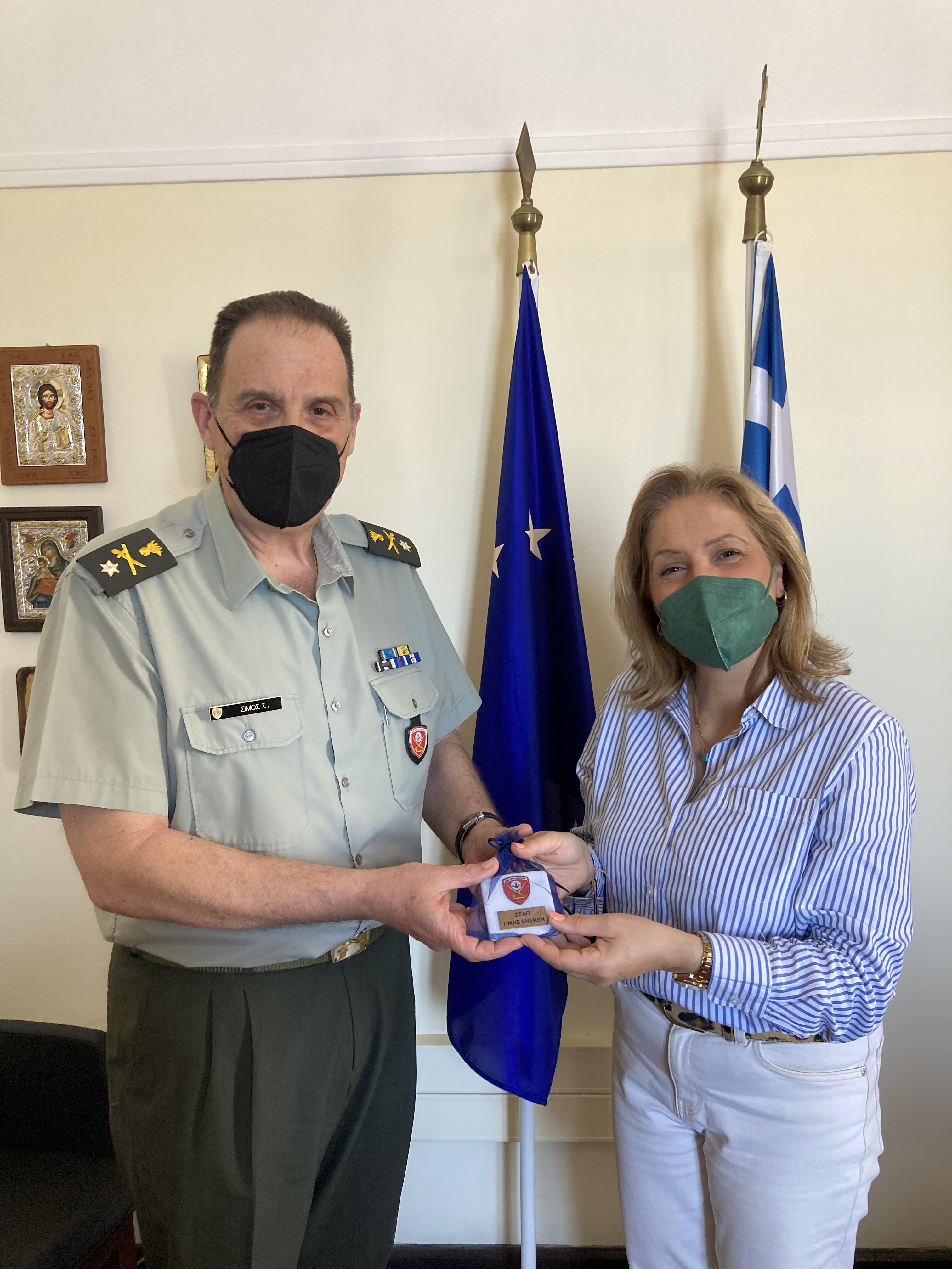 Συνάντηση με τη Συντονίστρια της Αποκεντρωμένης Διοίκησης Κρήτης Μαρία Κοζυράκη είχε σήμερα ο νέος Διοικητής της Σχολής Εφέδρων Αξιωματικών Πεζικού Ταξίαρχος Στέφανος Σίμος, πραγματοποιώντας εθιμοτυπική επίσκεψη, με αφορμή την πρόσφατη ανάληψη των καθηκόντων του.