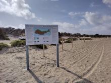 - απομακρύνθηκε ο κατεστραμμένος ξύλινος διάδρομος που αναπτυσσόταν εντός των αμμοθινών και ένωνε τη βόρεια με τη νότια πλευρά του νησιού ενώ αφαιρέθηκαν και απομακρύνθηκαν οι παλαιωμένοι ξύλινοι πάσσαλοι οριοθέτησης του οικοτόπου απόλυτης προστασίας,