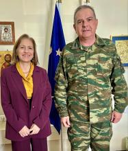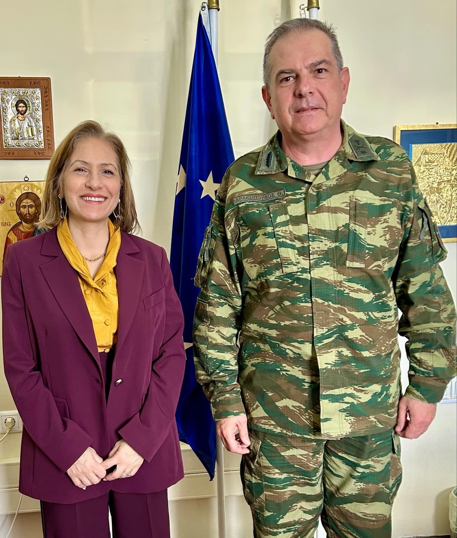 Με τη Γραμματέα της Αποκεντρωμένης Διοίκησης Κρήτης, Μαρία Κοζυράκη, συναντήθηκε σήμερα ο νέος Διοικητής της 44ης Στρατιωτικής Διοίκησης ΤΑΛΩΣ, Ταξίαρχος Θεόδωρος Δρακόπουλος, στο πλαίσιο εθιμοτυπικής επίσκεψης με αφορμή την πρόσφατη ανάληψη των καθηκόντων του.