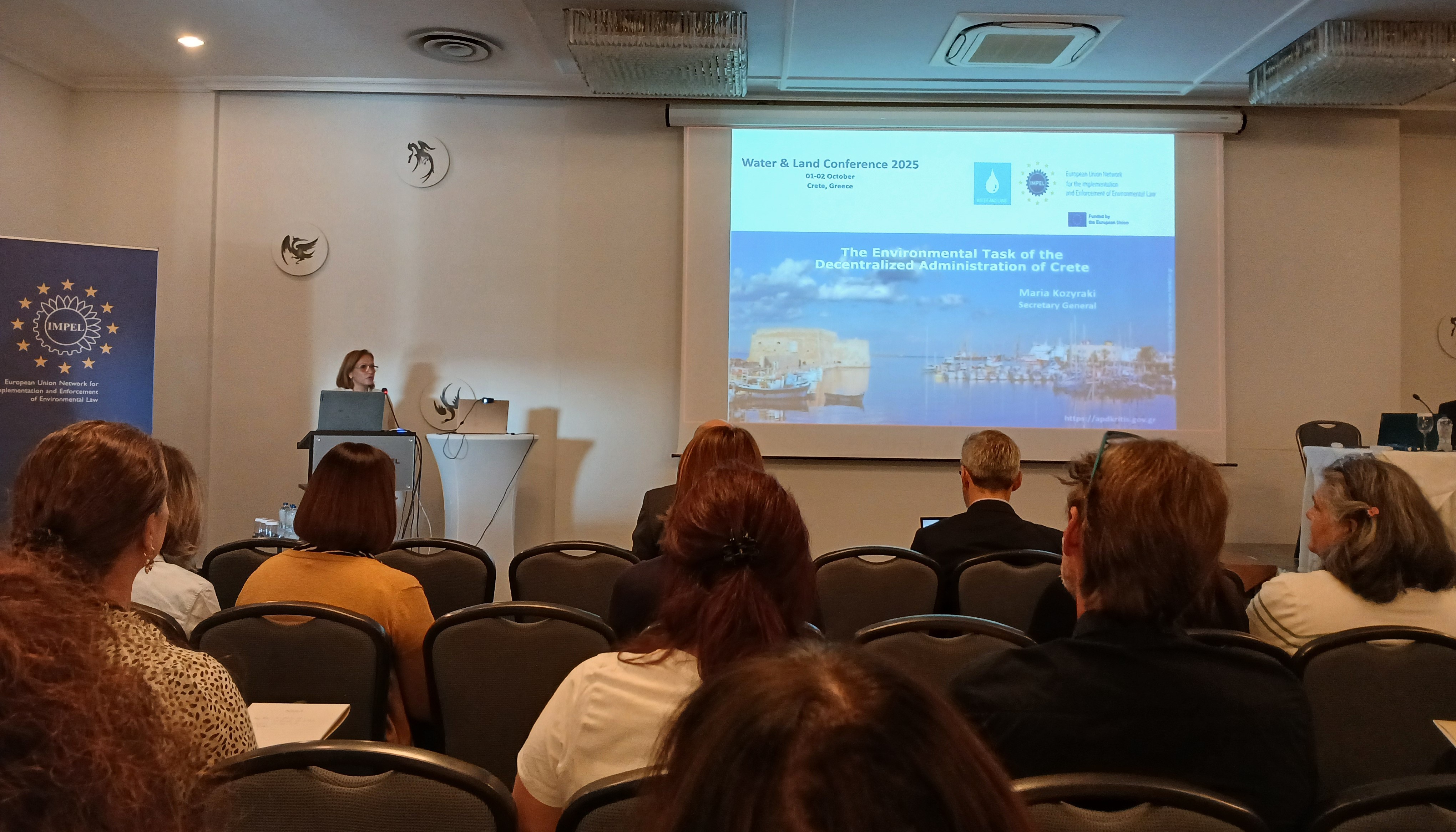 Στο Ηράκλειο διεξάγεται, από 1 έως 2 Οκτωβρίου, το συνέδριο μελών του Δικτύου της Ευρωπαϊκής Ένωσης για την Εφαρμογή και επιβολή της Ευρωπαϊκής Περιβαλλοντικής Νομοθεσίας (IMPEL), με τη συμμετοχή εκπροσώπων από 58 περιβαλλοντικές Αρχές και 37 χώρες. Το διήμερο συνέδριο με θέμα «Ένα περιβάλλον, μία πρόκληση: Βιώσιμη διακυβέρνηση για το Νερό και το Έδαφος» περιλαμβάνει έναν μεγάλο αριθμό επιστημονικών, ερευνητικών και τεχνικών παρουσιάσεων με έμφαση στη διαχείριση και επανάχρηση του νερού και με σκοπό την επάρκεια καλής ποιότητας ύδατος για όλες τις χρήσεις.